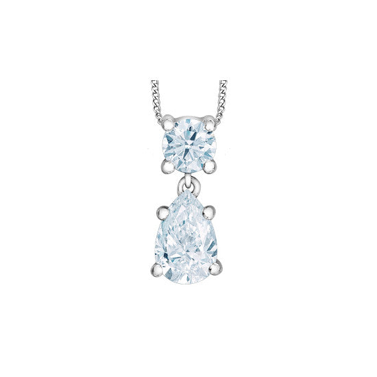 10K White Gold (0.75ct) Round and Pear Shaped Lab Grown Diamond Dangle Necklace