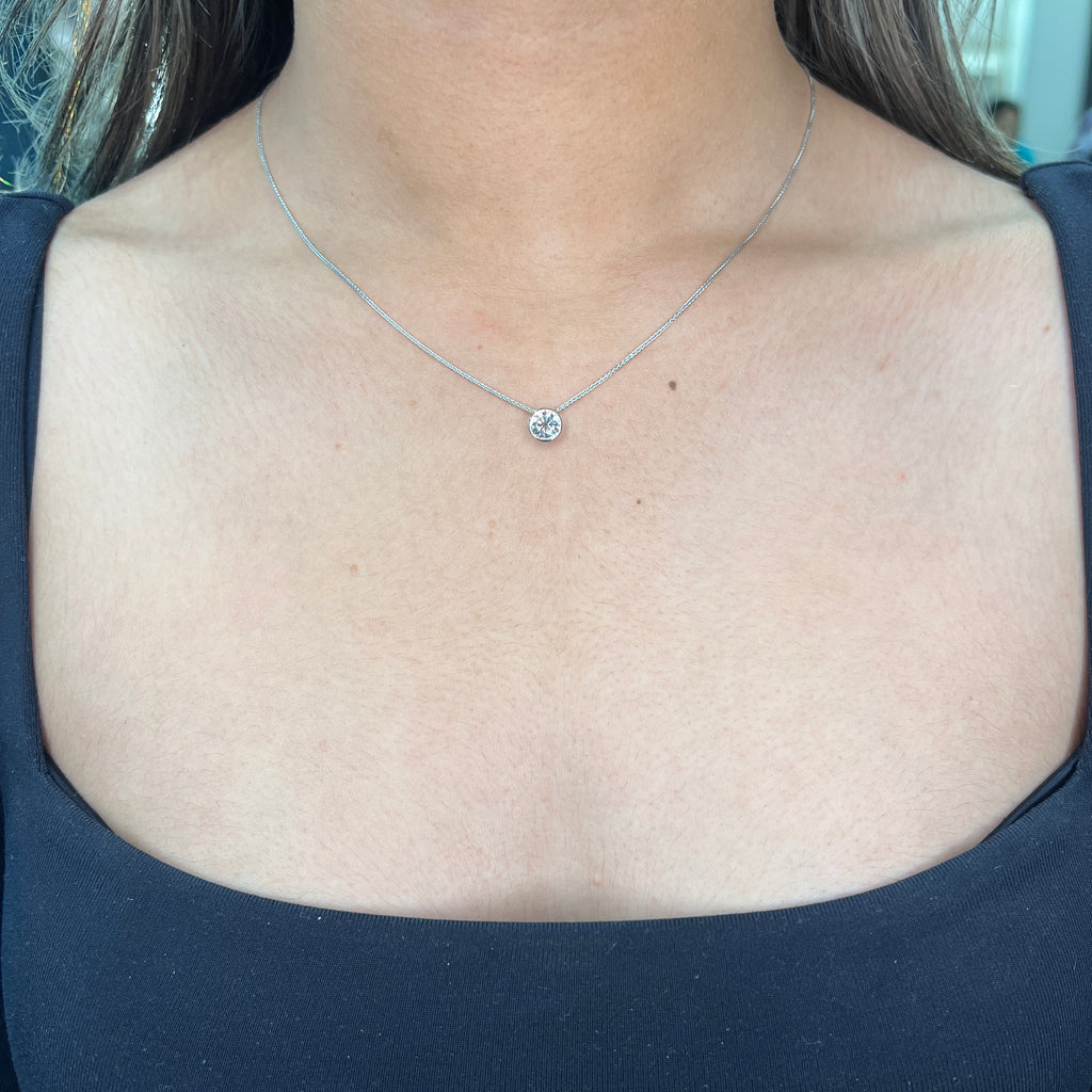 14K White Gold (0.50ct - 2.00ct) Lab Grown Diamond Bezel Set Solitaire Pendant