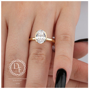 14K Gold Hidden Halo Oval Lab Grown Diamond Engagement Ring