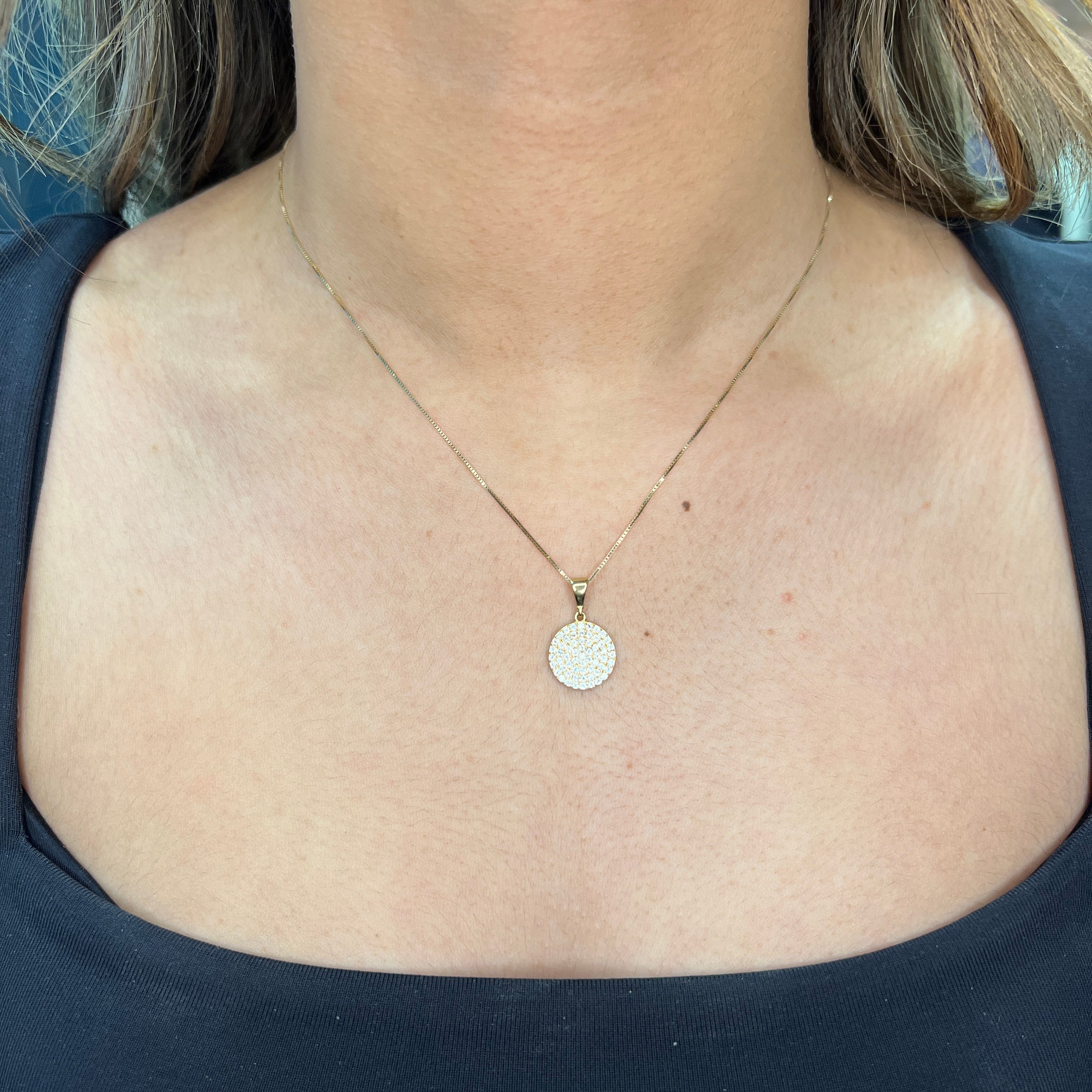 10K Yellow Gold Cubic Zirconia Disk Necklace
