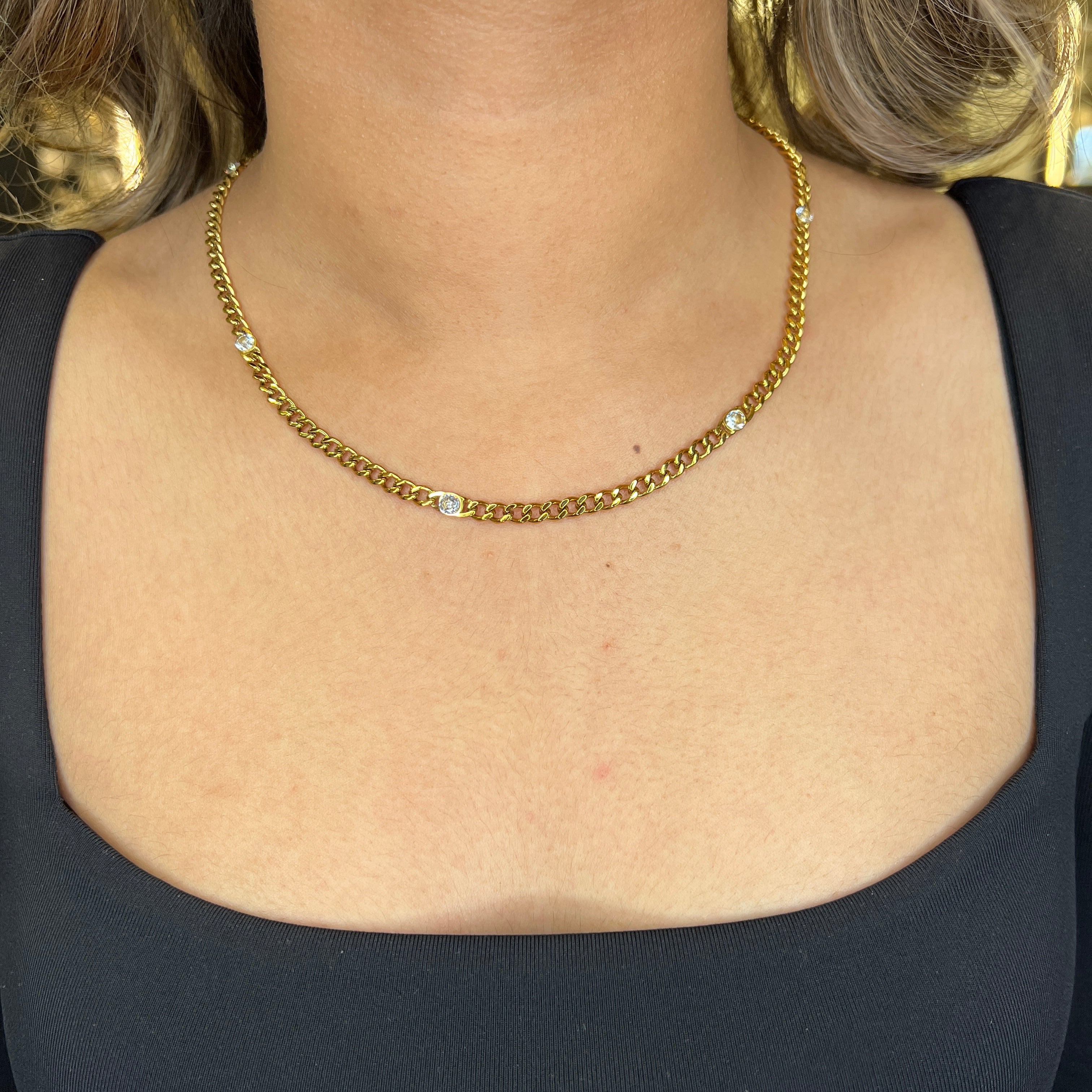 Sleek and versatile, this Stainless Steel Gold Plated Curb Necklace is accented with cubic zirconia stations for just the right touch of sparkle. Perfect for layering or wearing solo.