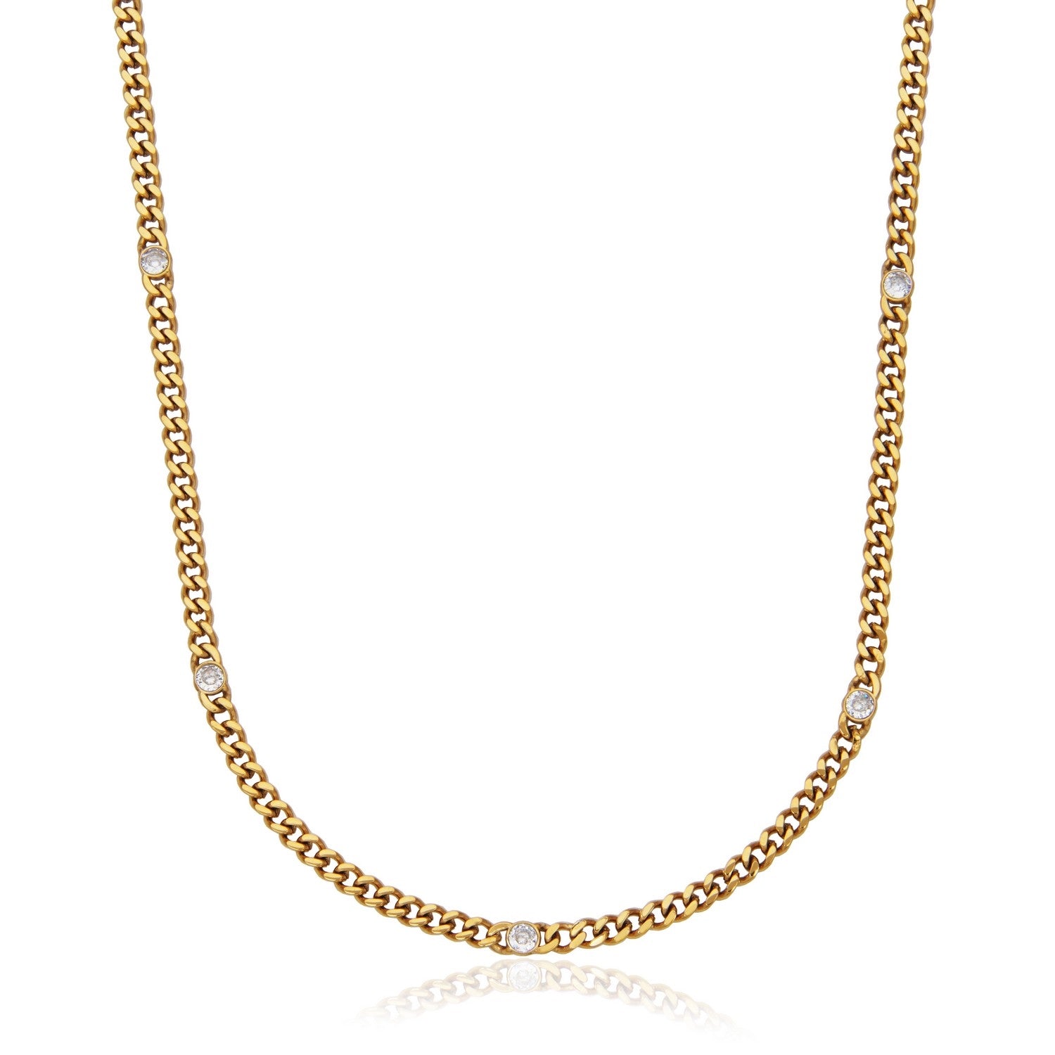 Steelx Stainless Steel Gold Plated Cubic Zirconia Station Curb Necklace