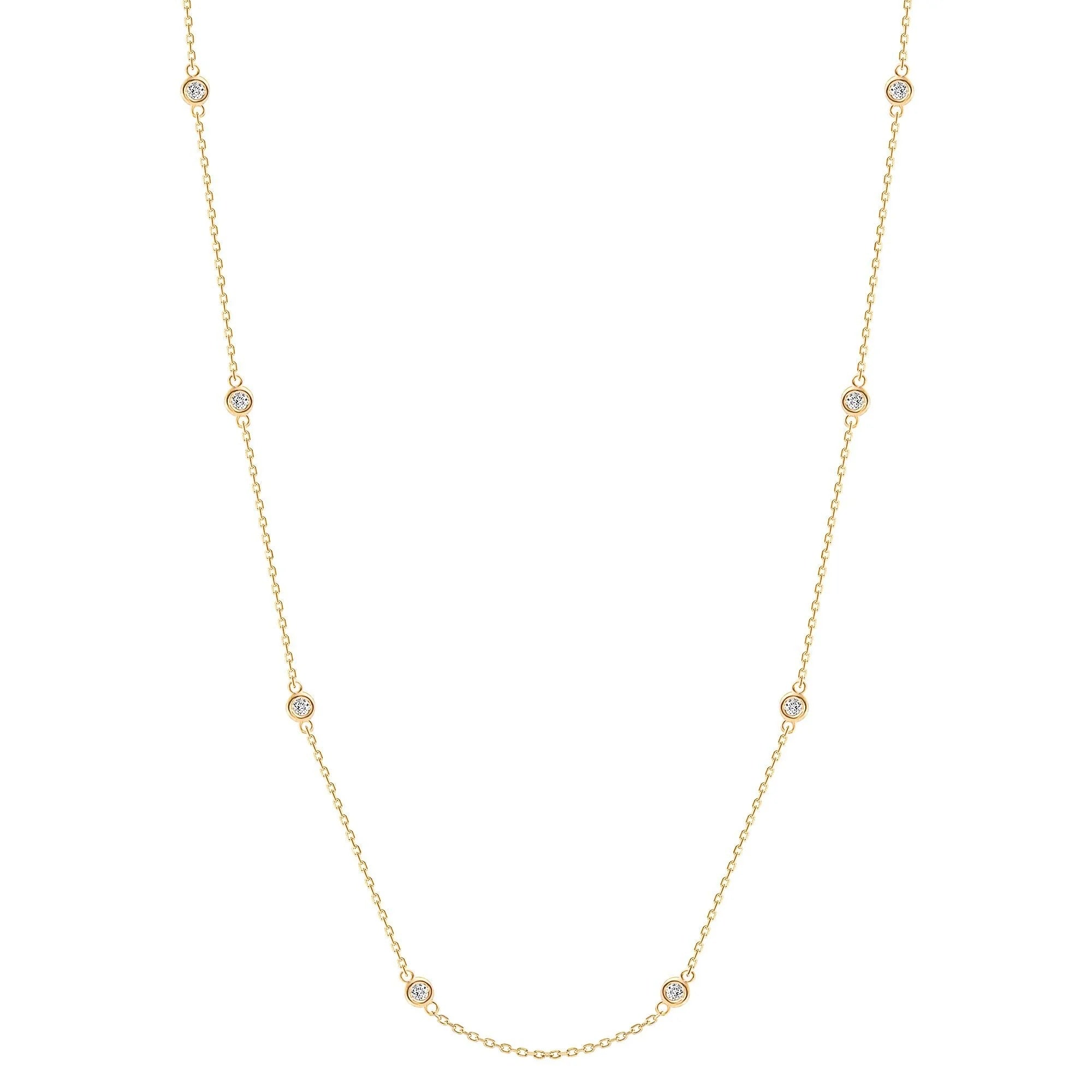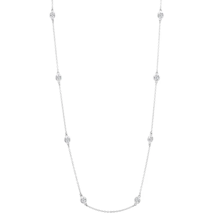 Sterling Silver Bezel Set Cubic Zirconia Station Necklace