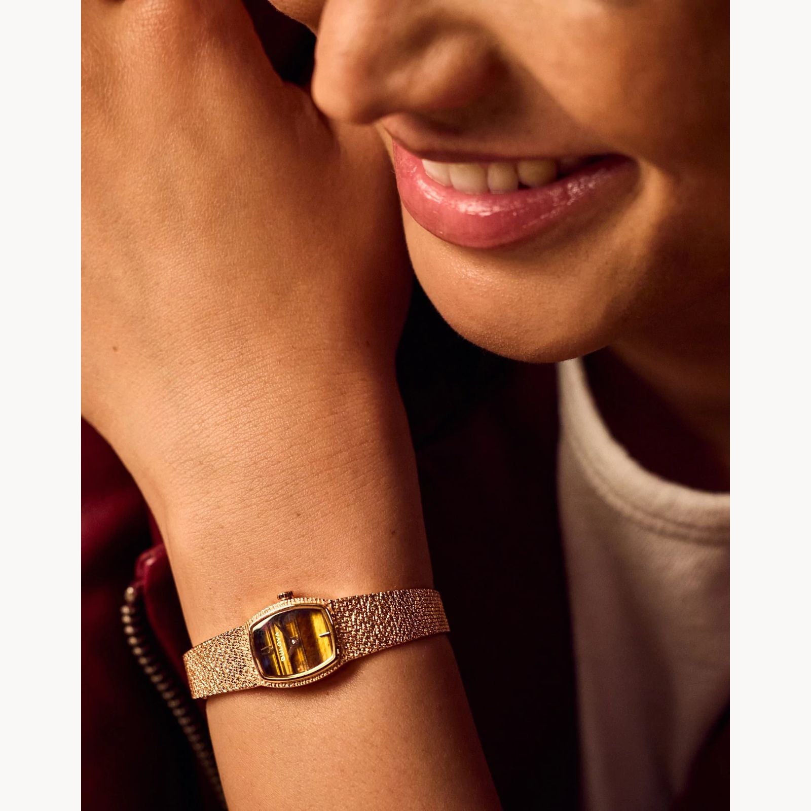 Bulova Goddess of Time Ladies Rose Tone Tiger's Eye Dial Mesh Strap Watch