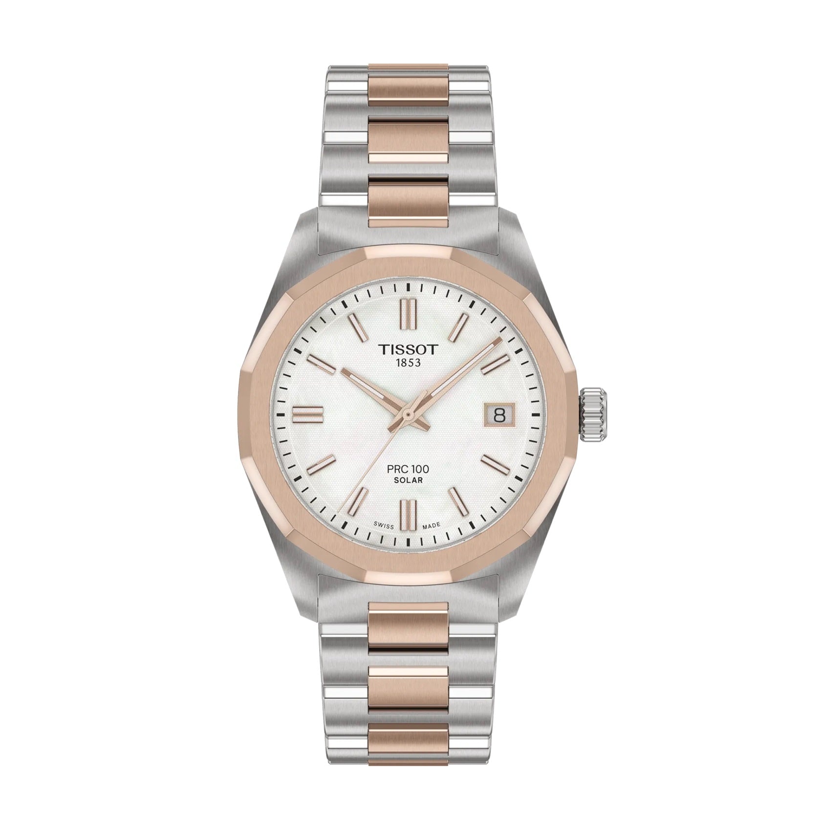 Tissot PRC 100 Solar (34mm) Two Tone Mother of Pearl Dial Watch