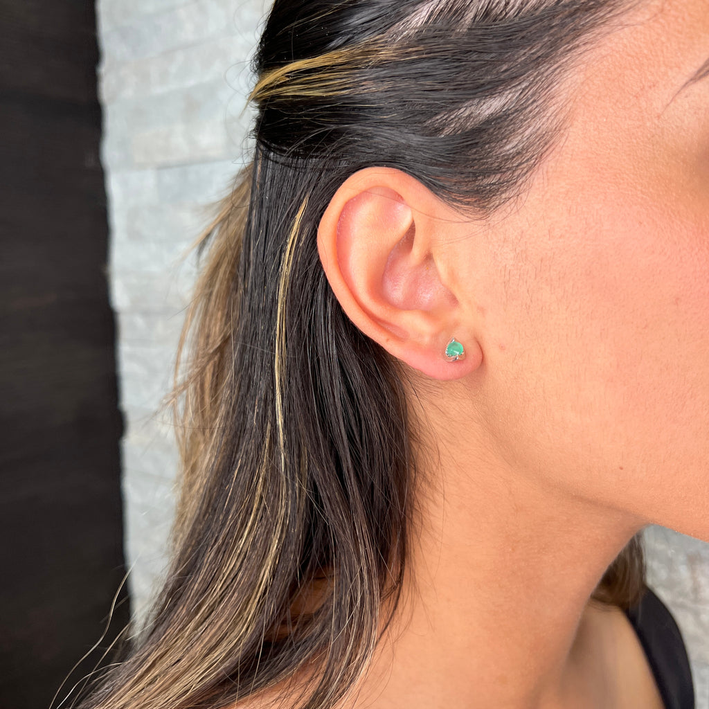 10K White Gold Half Moon Set Emerald Stud Solitaire Earrings