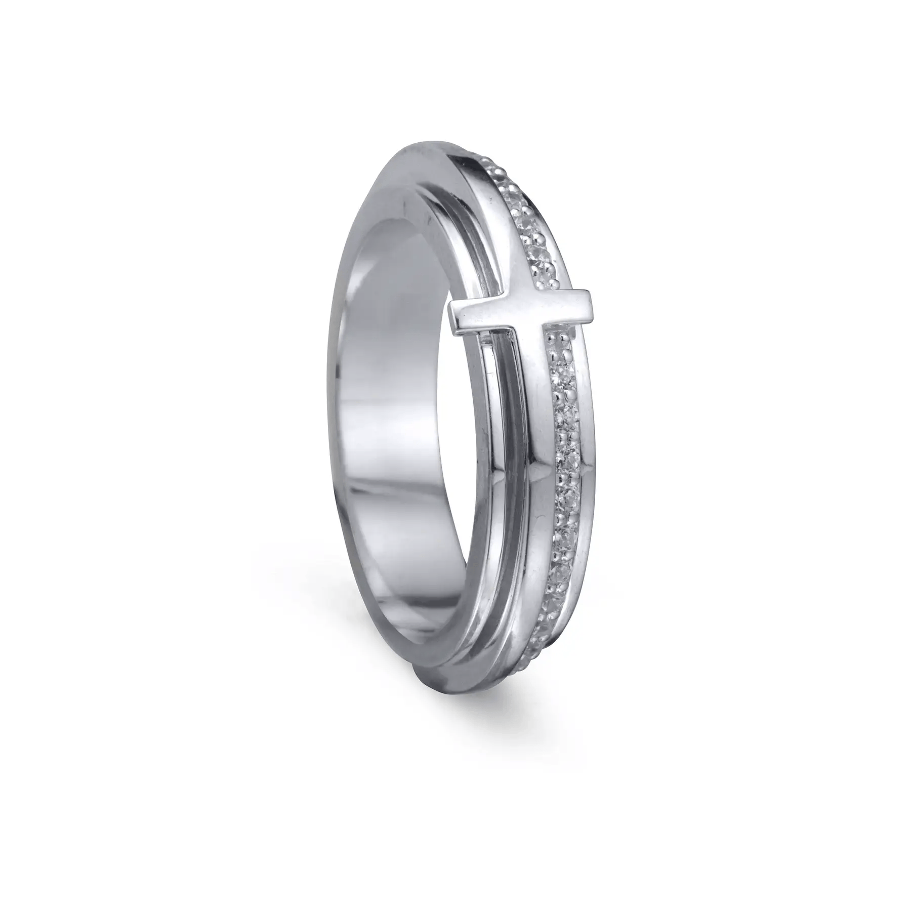 Meditation Rings Haven Sterling Silver Cross and CZ Spinning Band