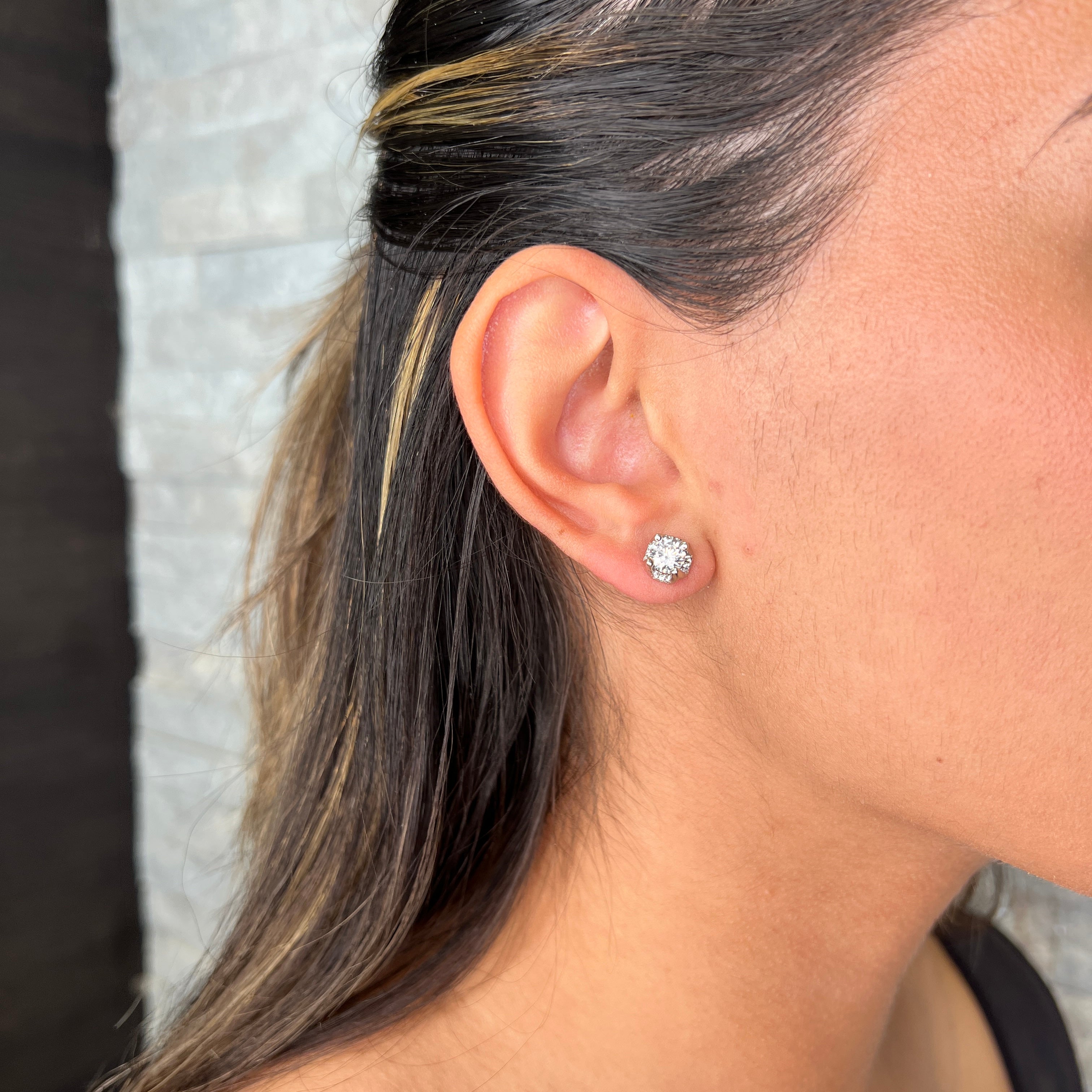 Illuminate your ears with timeless elegance in our Sterling Silver Cubic Zirconia Earrings. Each meticulously crafted earring showcases a brilliant cubic zirconia stone, exuding a captivating sparkle. Set in sterling silver, these earrings strike the perfect balance between simplicity and sophistication.