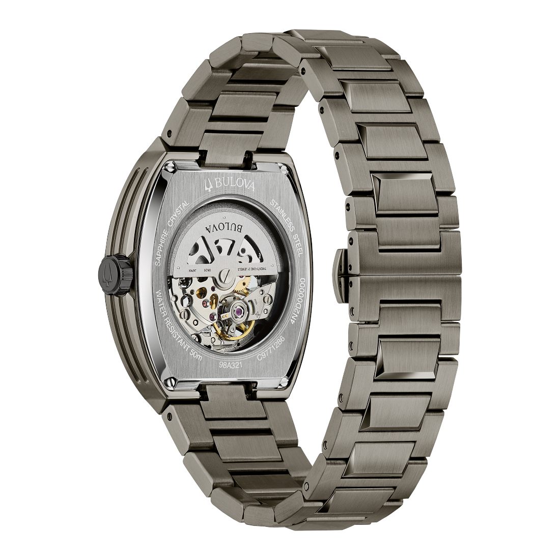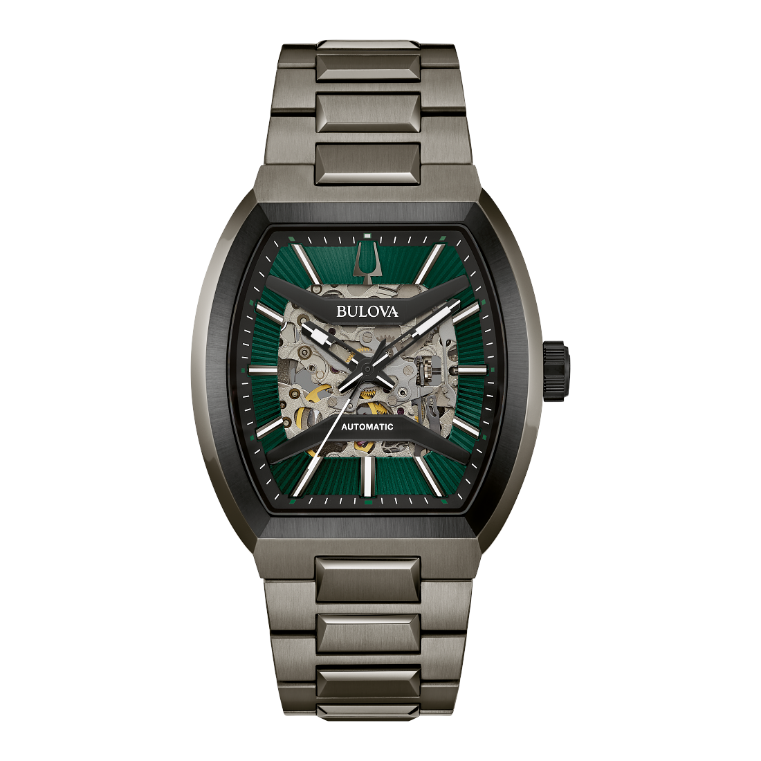 Bulova Maquina Mens Automatic Gunmetal & Black Tone Open Heart & Green Dial Watch