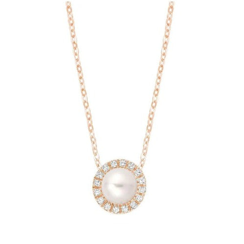 10K Rose Gold (0.06ct) Diamond Halo Pearl Necklace