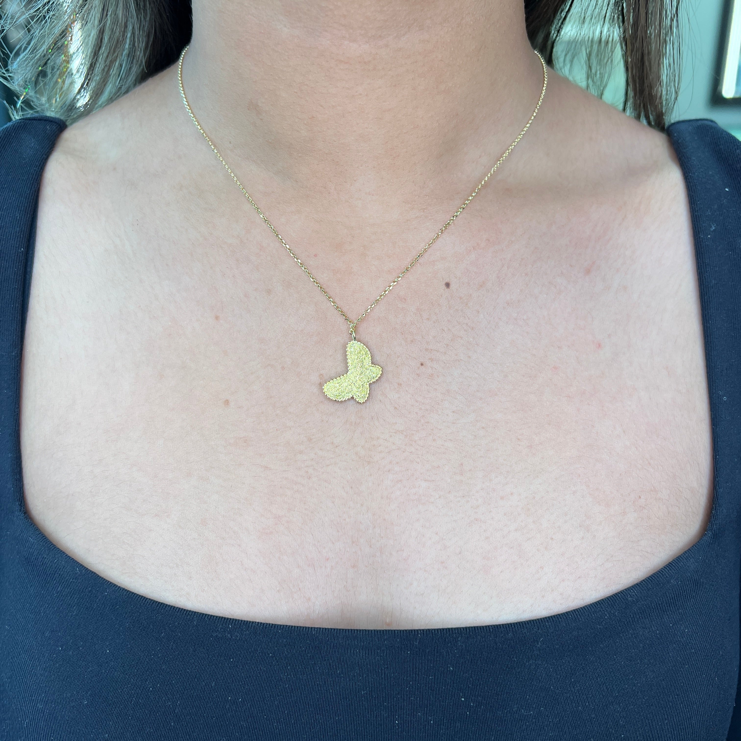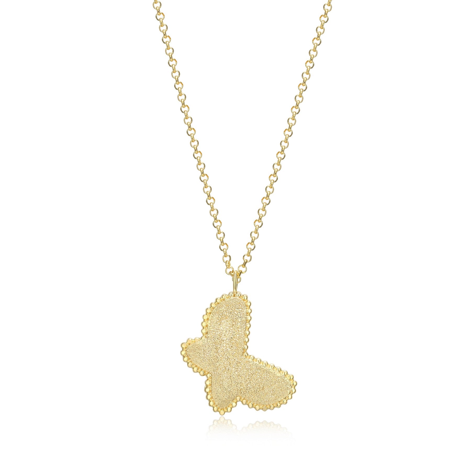 Reign Sterling Silver 18K Gold Plated Beaded Edge Butterfly Pendant Necklace