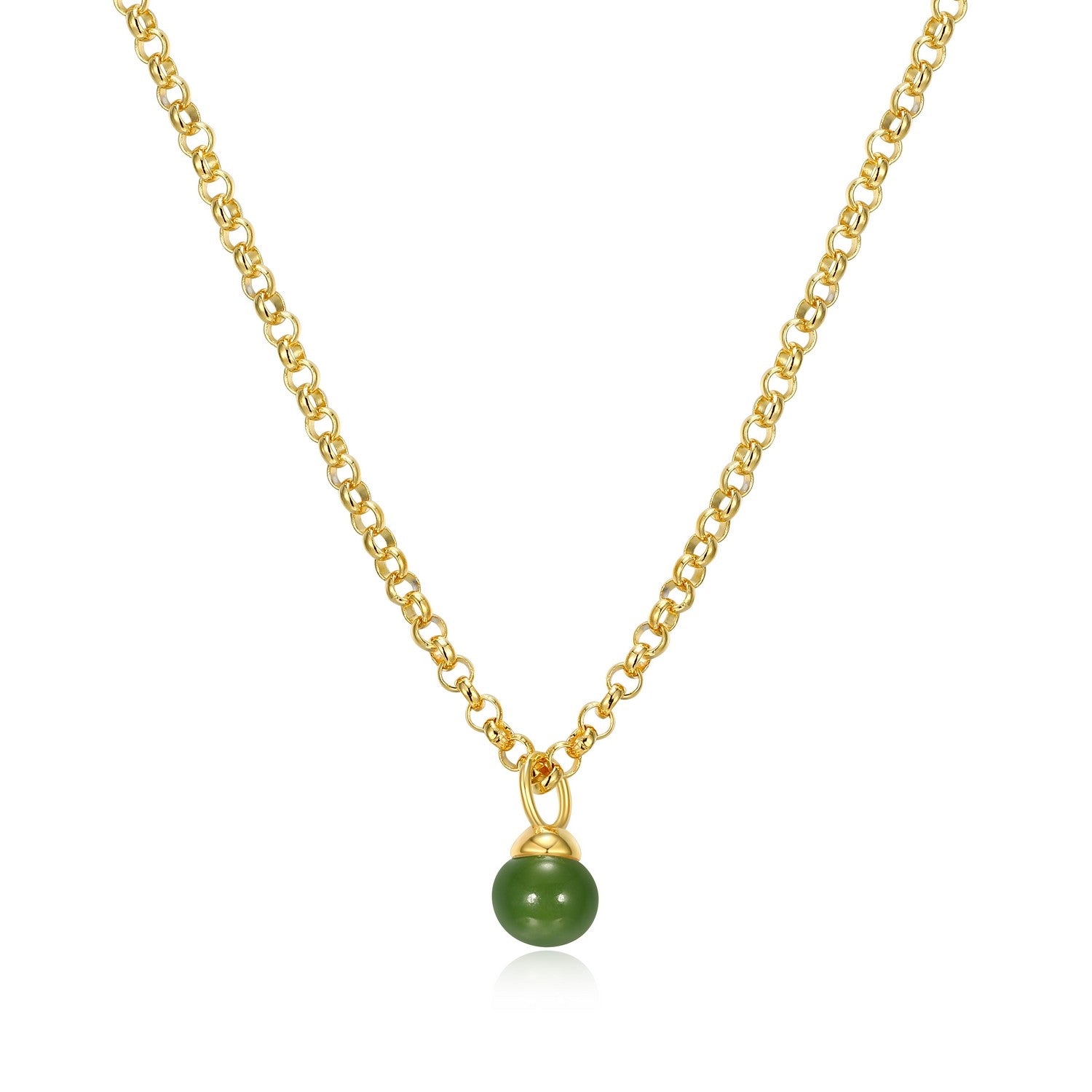 Reign Sterling Silver 18K Gold Plated Green Nephrite Jade Solitaire Bead Necklace