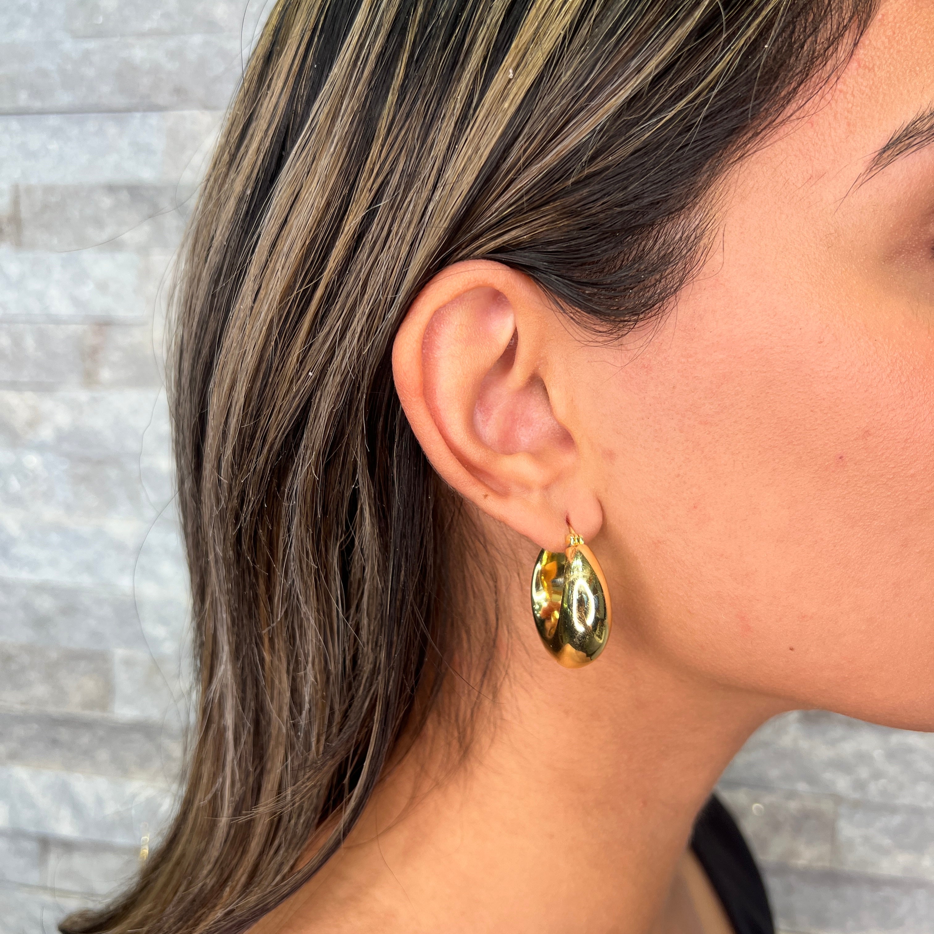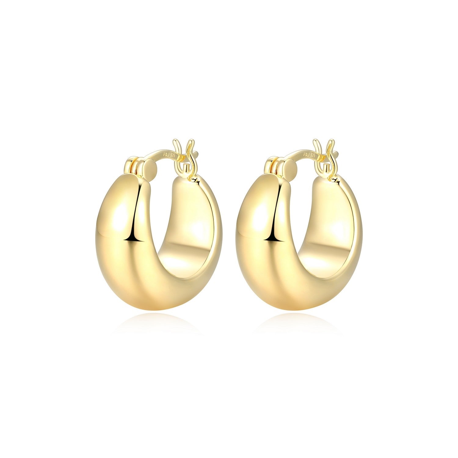 Reign Sterling Silver 18K Gold Plated Puffed Tapered Hoop Earrings