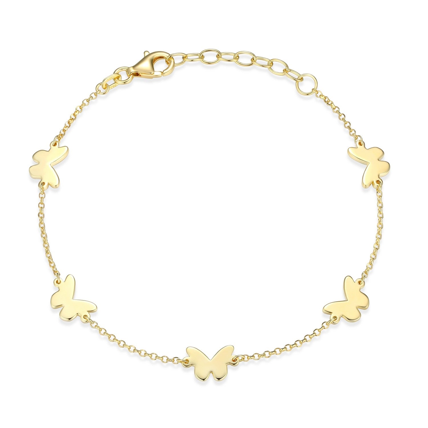 Reign Sterling Silver 18k Gold Plated Whimsical Butterfly Station Bracelet