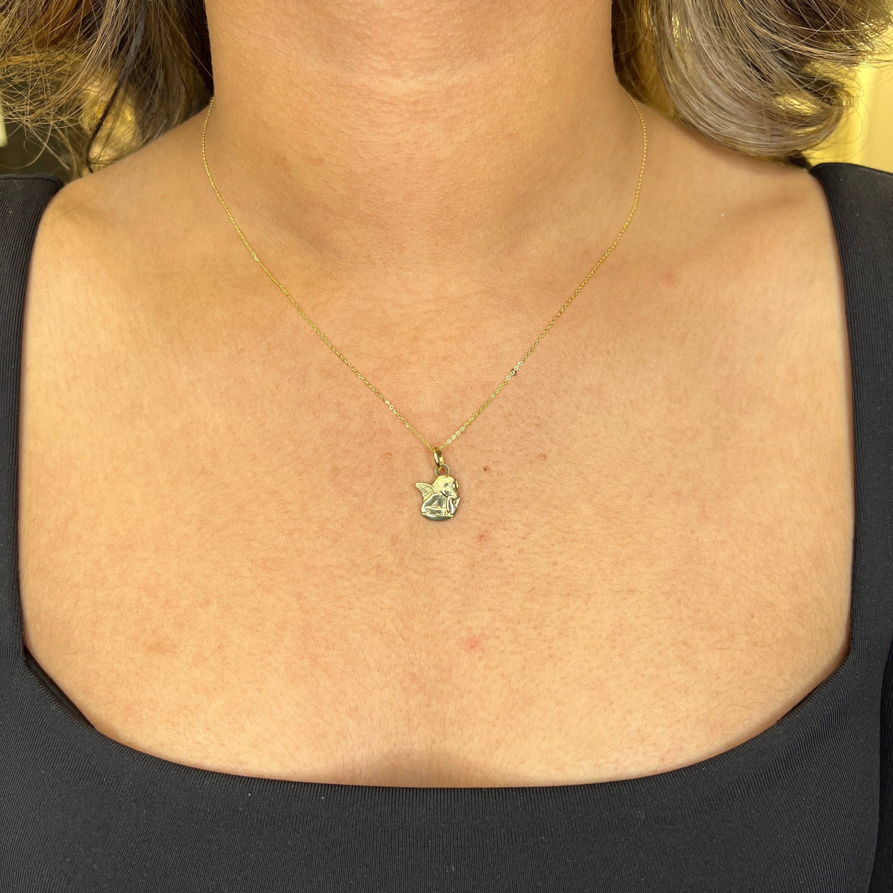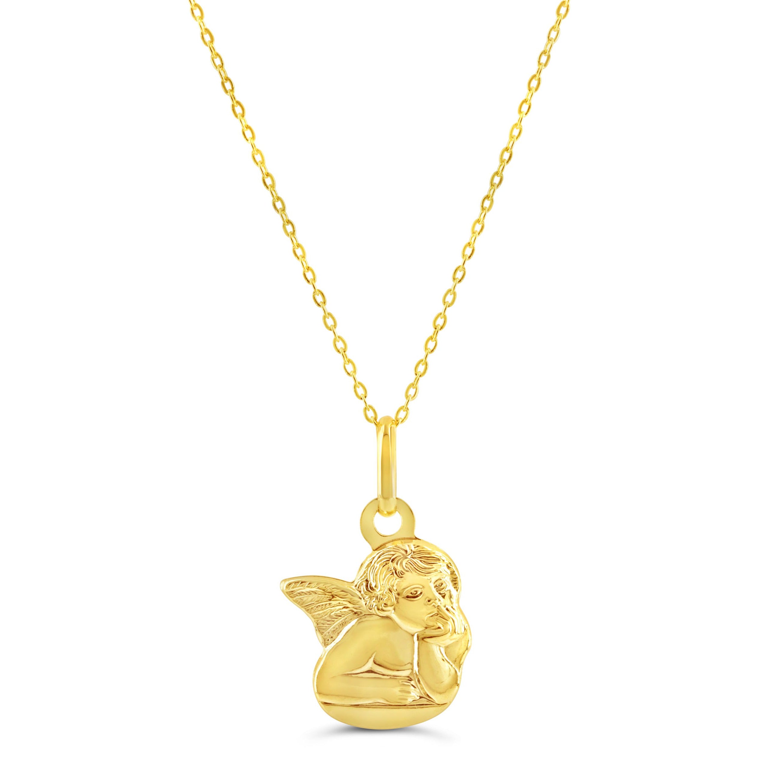 Keep faith and protection close with this 10K yellow gold guardian angel necklace. The finely crafted angel pendant adds a meaningful touch, making it a timeless piece for everyday wear or a thoughtful gift.