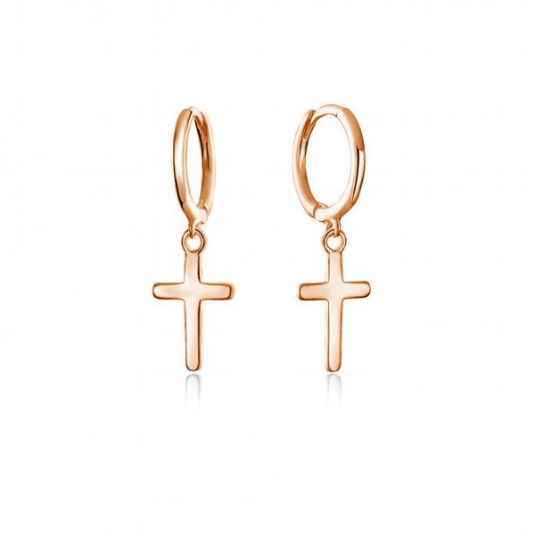 Sterling Silver/Gold or Rose Gold Plated Dangle Cross Huggie Earrings