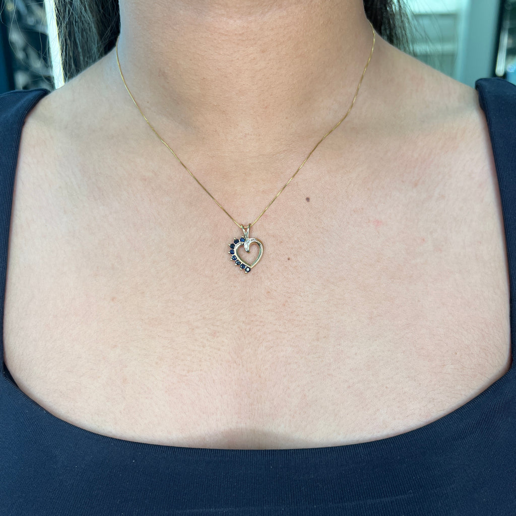 10K Yellow Gold Sapphire and Diamond Heart Pendant