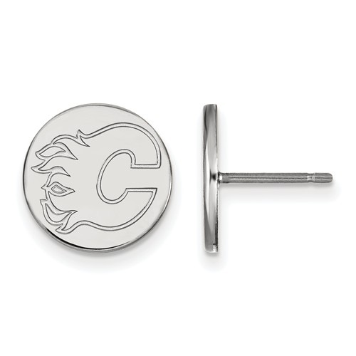 NHL Licensed Sterling Silver Rhodium Plated Calgary Flames Stud Earrings