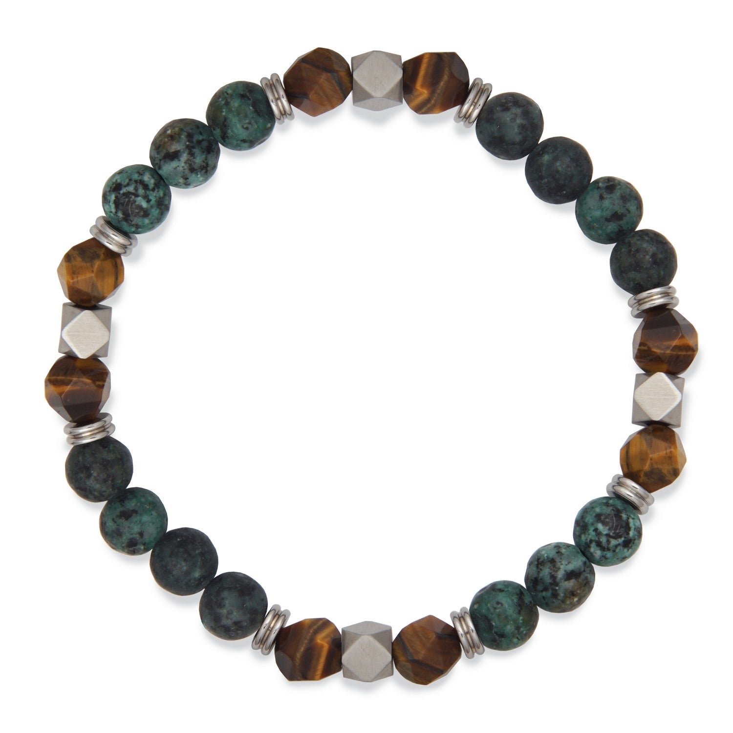 Steelx Matte Tiger's Eye and African Stone Beaded Stretch Bracelet