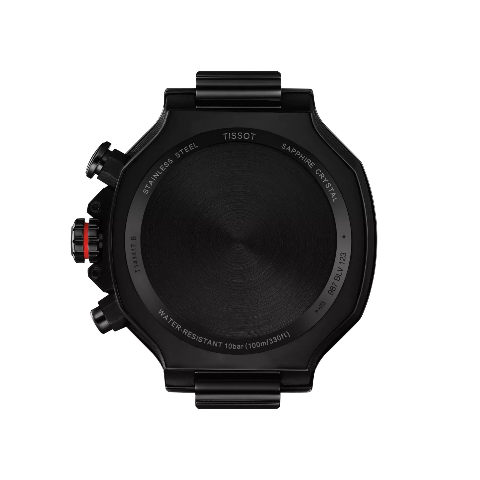 With its new design, including a more elevated dial, the Tissot T-Race Chronograph gets more elegant without denying its sporting roots. Inspired by the partnerships between Tissot and motorcycle racing, the T-Race Chronograph reflects the dynamism of motorcycles and the emotion of the sport. The watch is water-resistant up to a pressure of 10 bar (100 m), equipped with a quartz chronograph movement and features hour and minute hands coated with SuperlumiNova. The scratch-resistant, anti-reflective sapphire crystal guarantees enhanced robustness. This version of the Tissot T-Race Chronograph features a black PVD-coated stainless steel case, a black dial with red accents and a matching rubber strap.