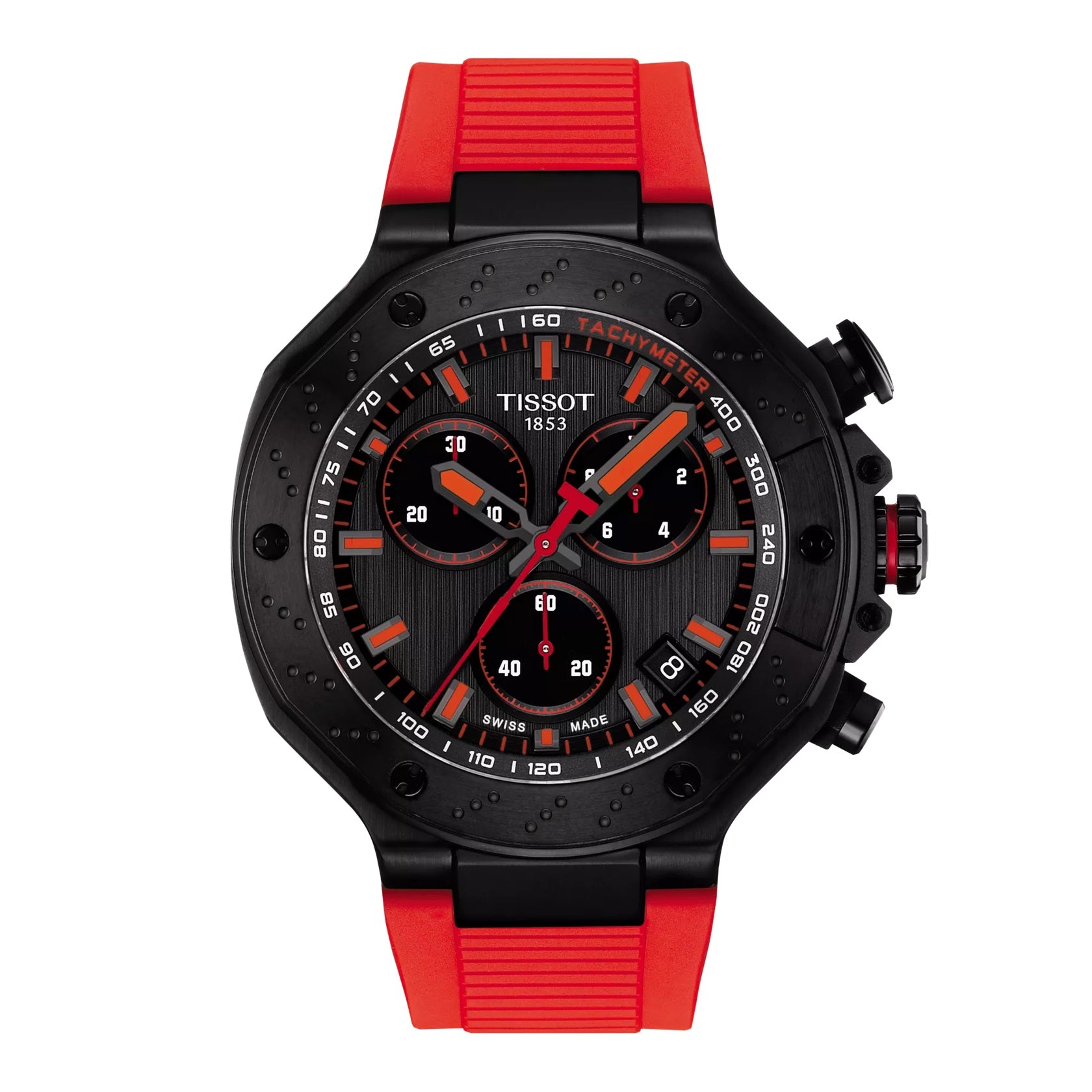 Tissot T-Race Chronograph Mens Black Tone Red Silicone Strap Watch