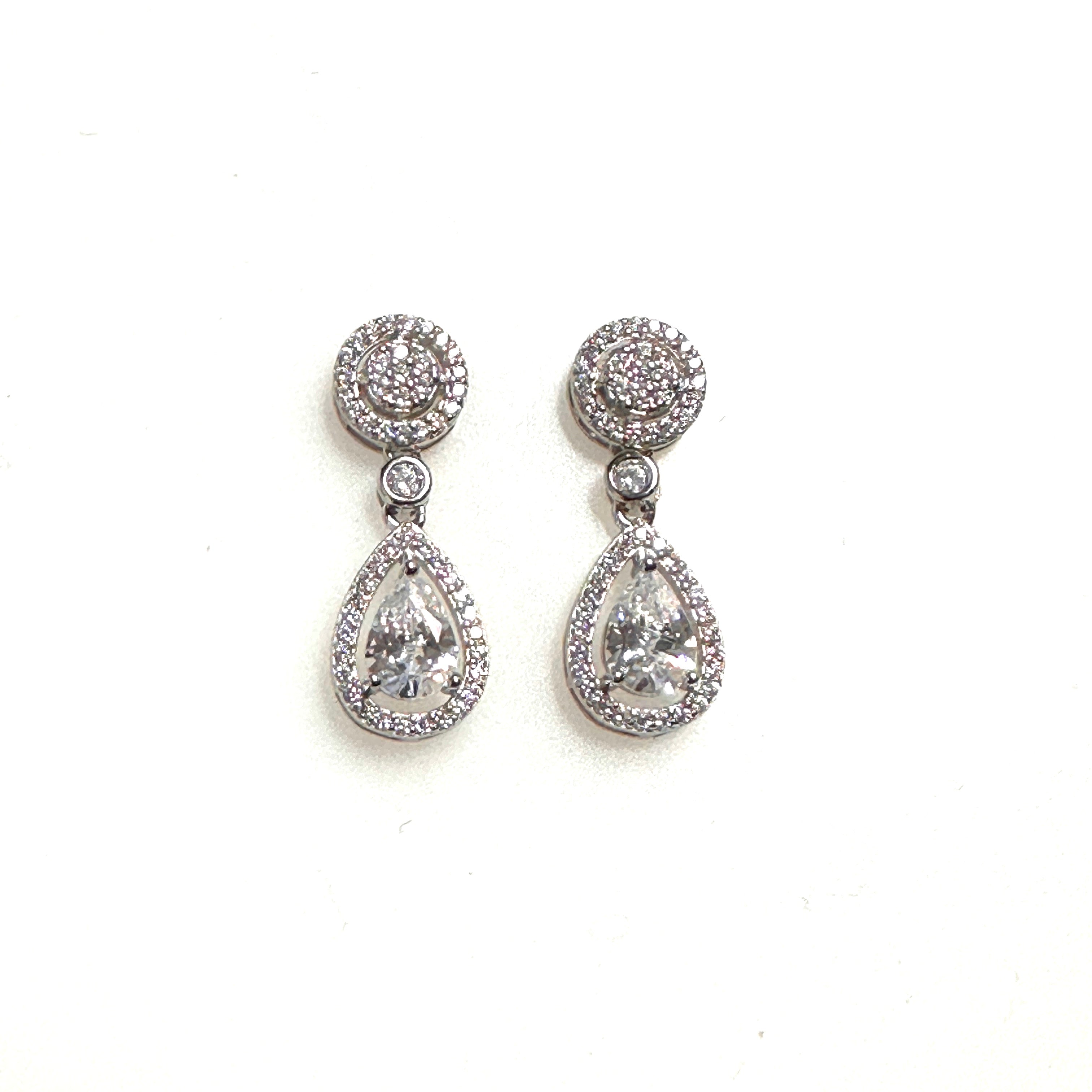 These dangle earrings feature elegant teardrop cubic zirconia accents, designed to sparkle beautifully with a high-polish finish and timeless appeal.