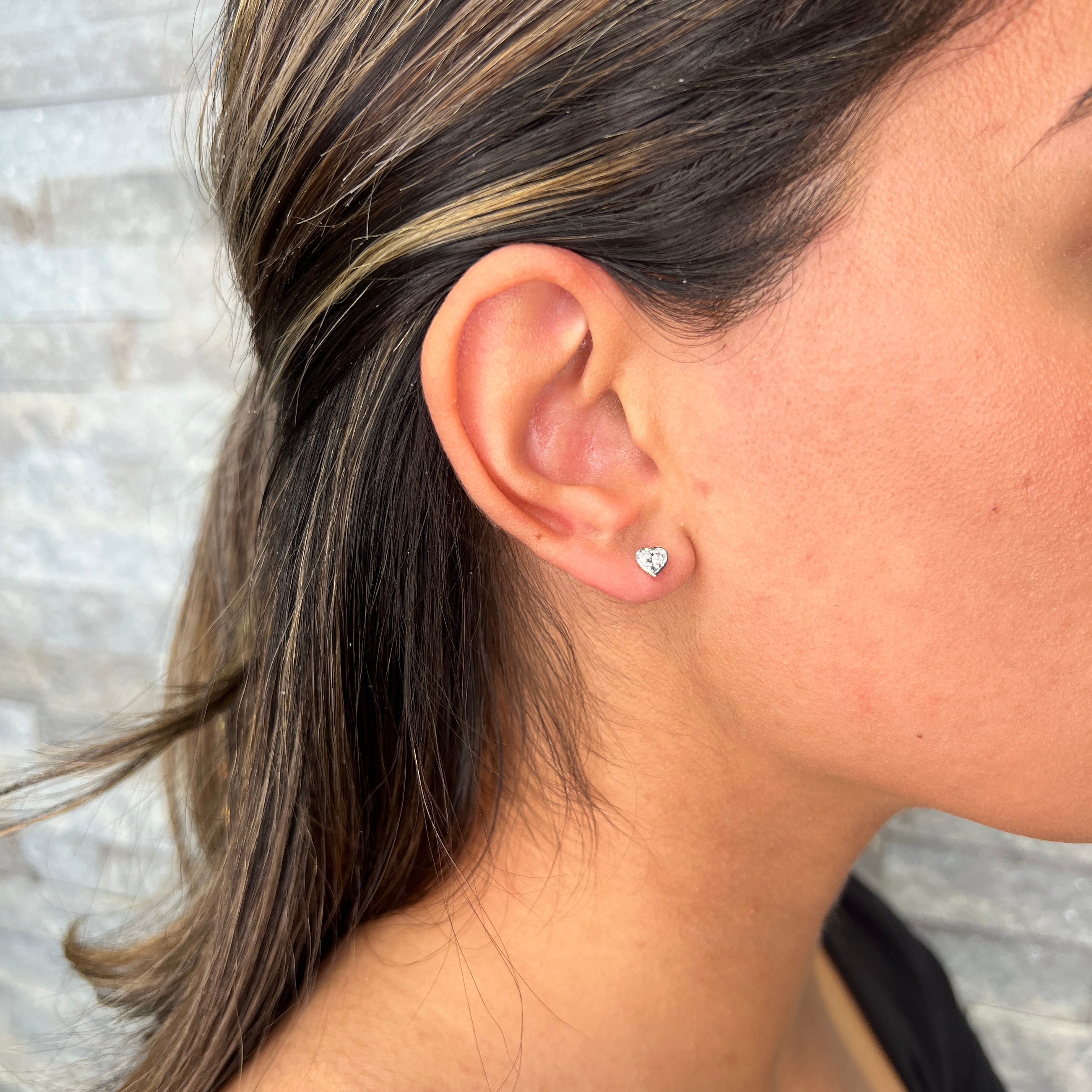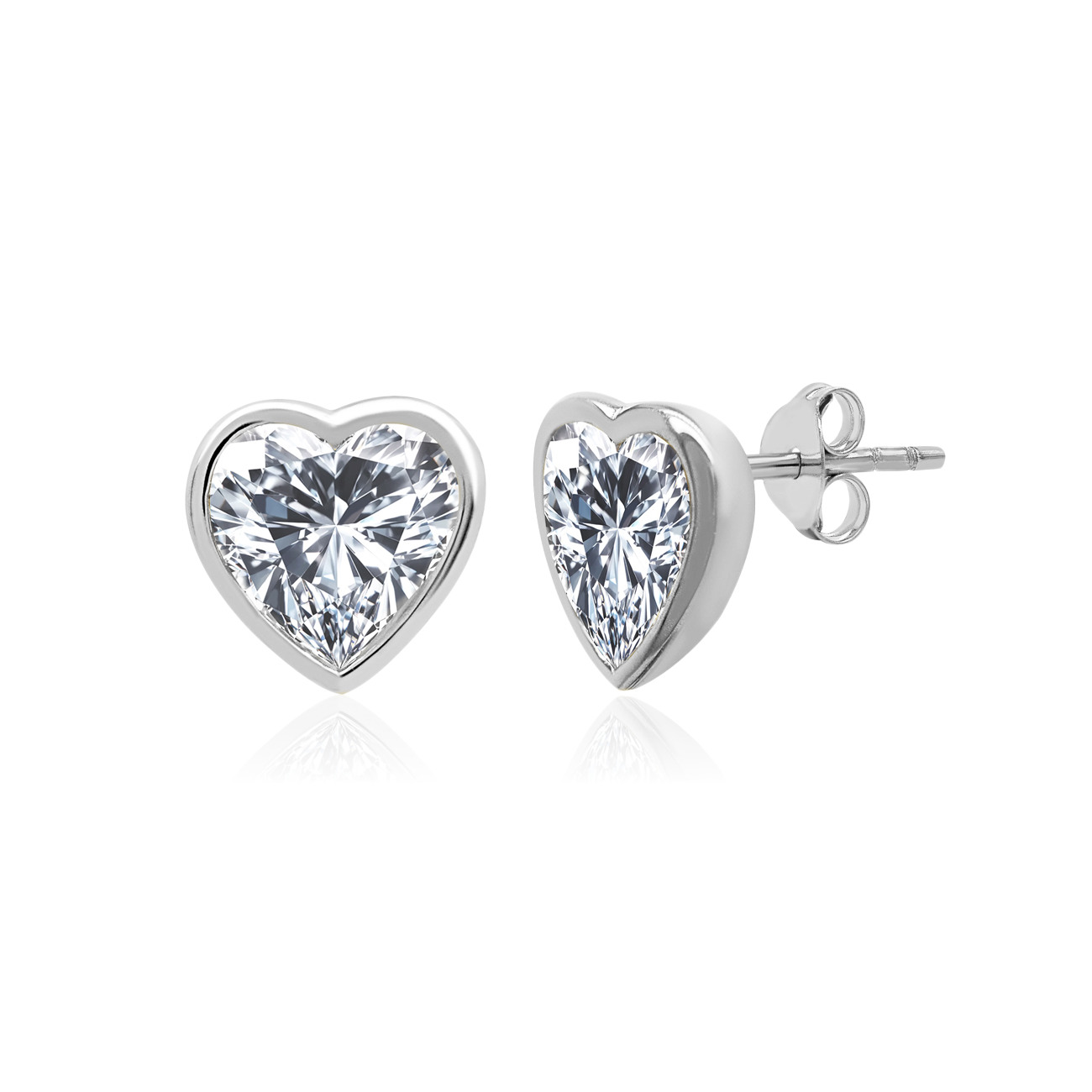 10K White Gold Lab Grown Diamond Heart Bezel Set Stud Earrings