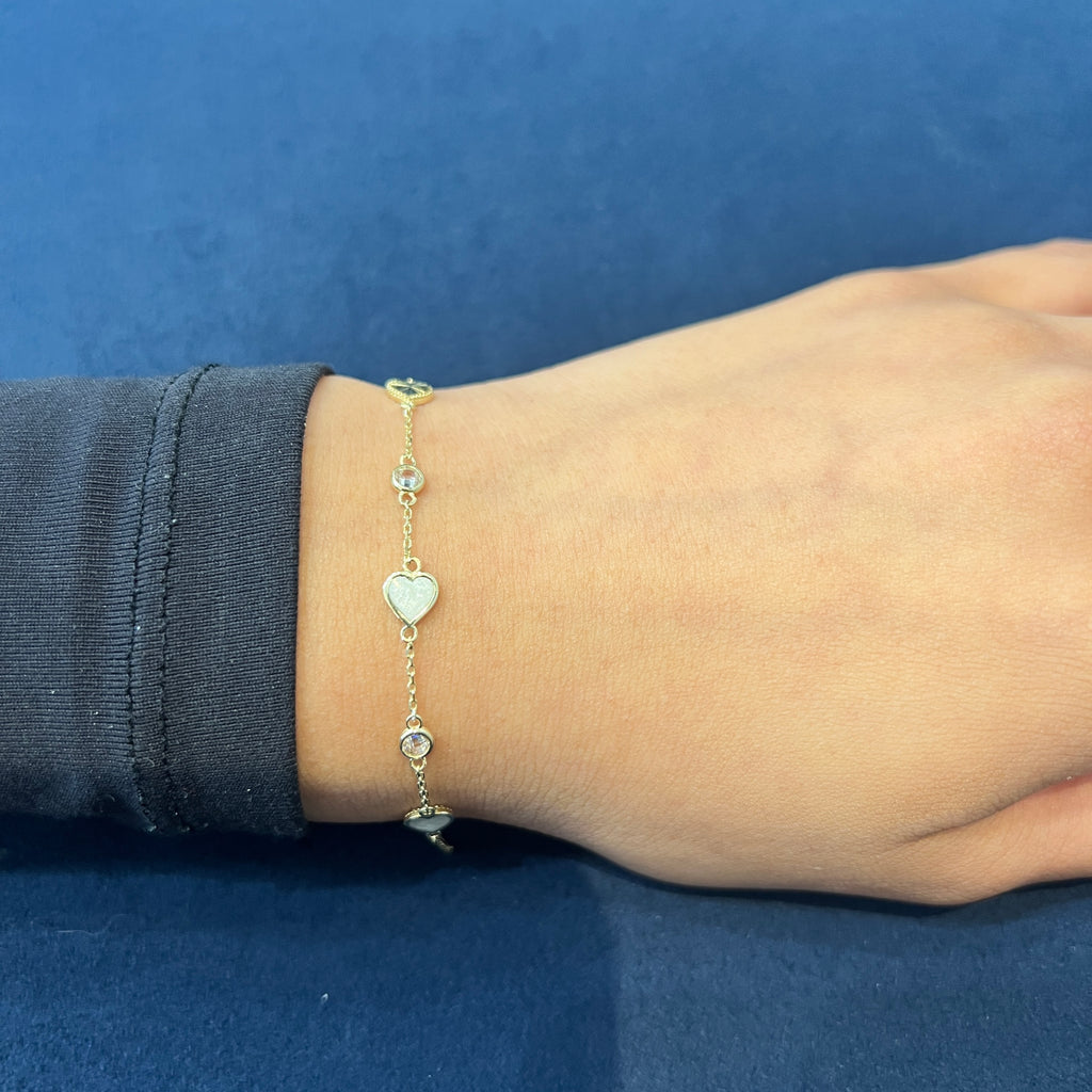 10K Yellow Gold Mother of Pearl Heart CZ Bracelet