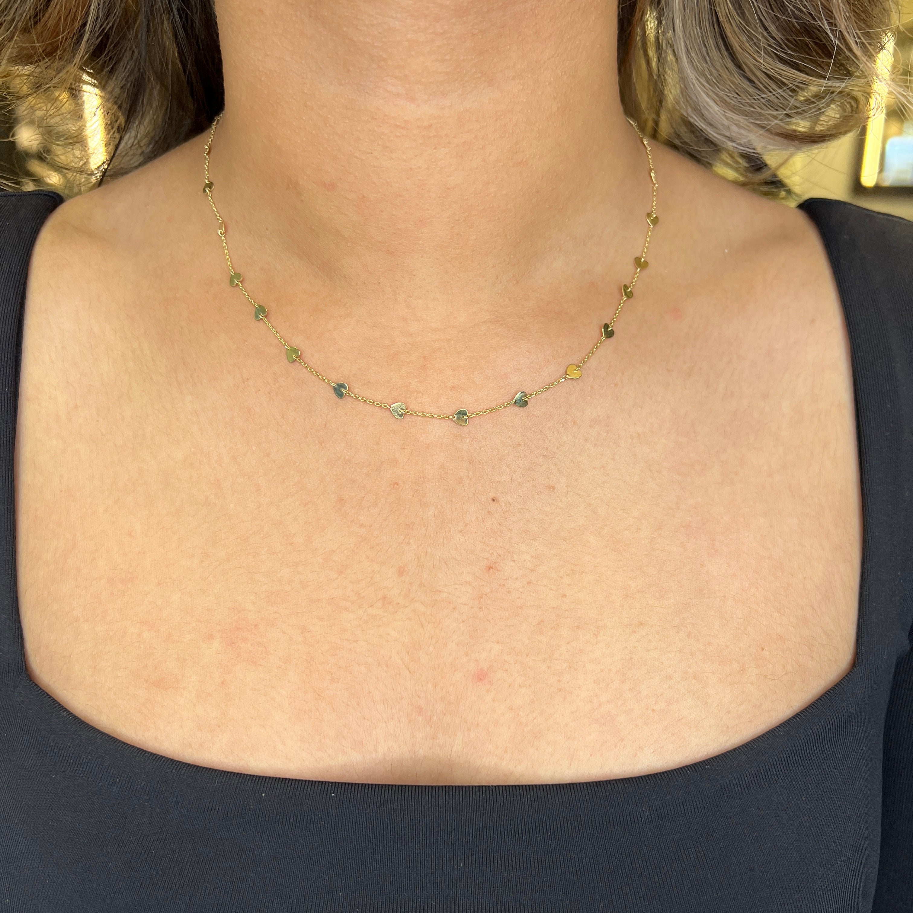 10K Yellow Gold Heart Station Necklace