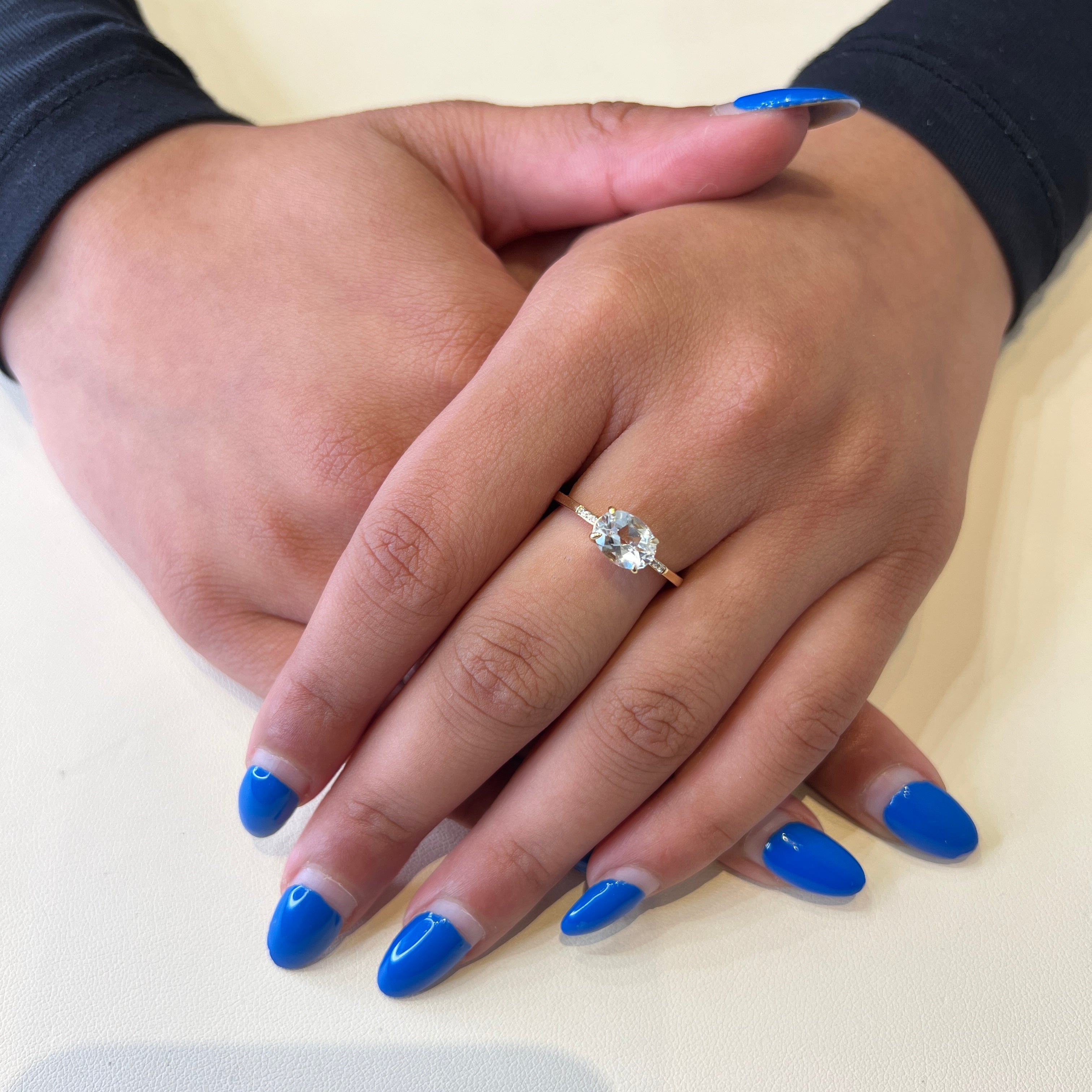 10K Yellow Gold (8x6mm) White Topaz and Diamond Ring
