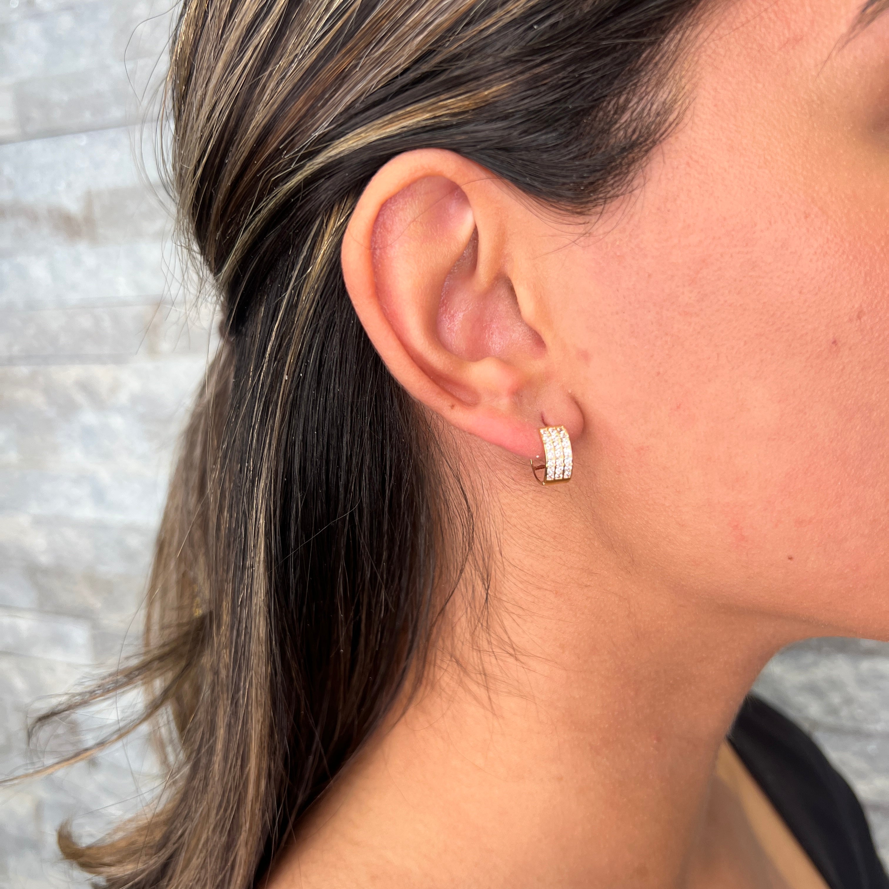 14K Yellow Gold Three Row Cubic Zirconia Huggie Earrings