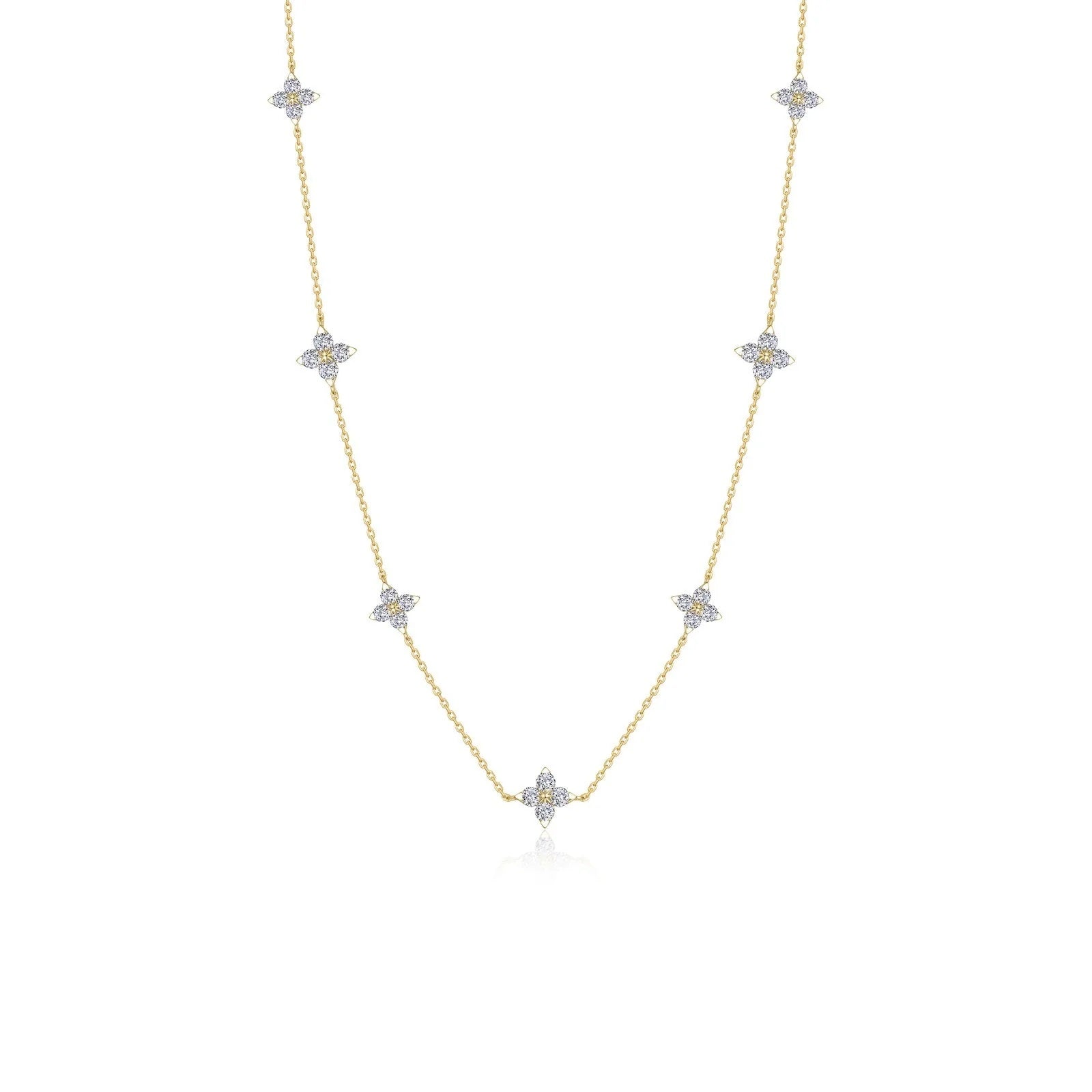 Lafonn Sterling Silver Gold Plated Simulated Diamonds Trillium Station Necklace