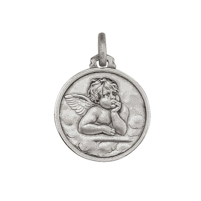 Sterling Silver Rhodium Plated Satin Angel Medallion Pendant