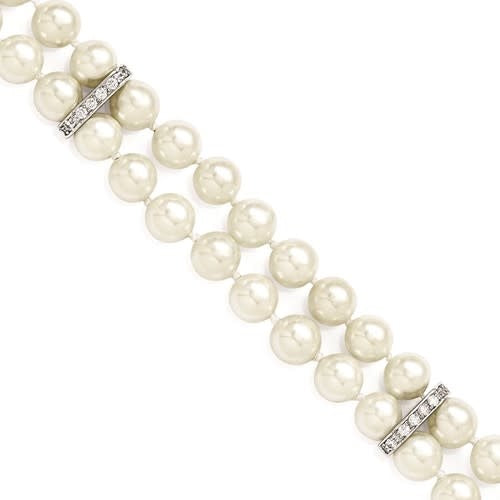 Sterling Silver White Shell Pearl and Cubic Zirconia Double Strand Bracelet