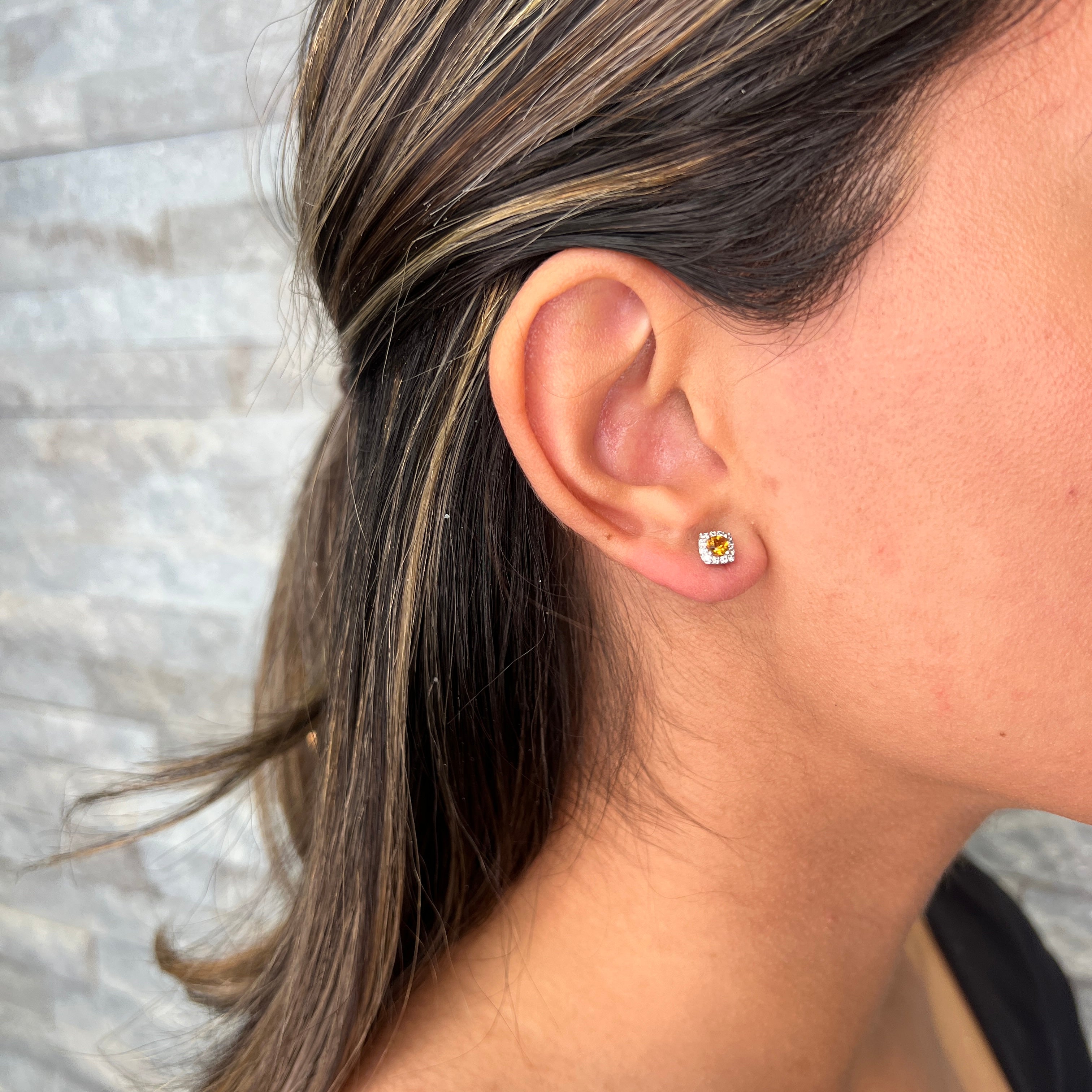 10K White Gold (November) Birthstone Citrine and Diamond Halo Stud Earrings